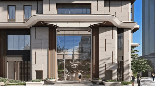 新福港鼎峰江畔秉承港企一贯的精致设计风格,在户型打造上兼顾实用性与舒适性,主力推出88平、108平、118平、129平四种户型,分别对应三房、小四房、大四房设计,适配刚需、改善等不同置业人群的需求。项目裙楼采用铝板外立面,质感十足;入户大堂挑高设计,顶部弧形顶面搭配金属腰线装饰,辅以艺术装置和绿植点缀,尽显现代格调与品质感。