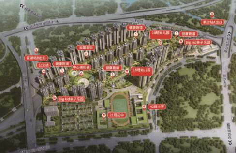 休闲空间:约26万平方米的立体空中园林,包括亲子菜园、亲水乐园、游泳池、篮球场等多种康体设施,为居民提供了丰富的休闲选择。