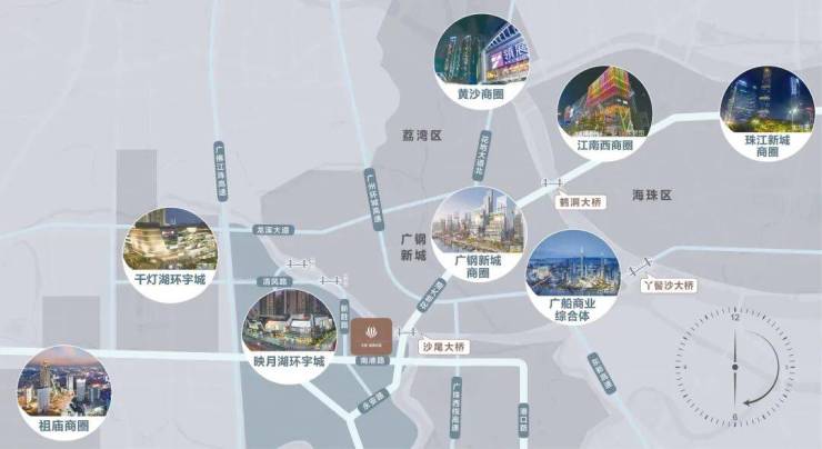 中海丽湾尚宸位于广佛交界的黄金地段,紧邻映月新城。其优越的地理位置使其成为连接广州和佛山的重要节点。项目距离广钢新城仅约7公里,离海珠区也仅有约7公里的距离,而到达荔湾老城生活区只需通过一座桥即可。