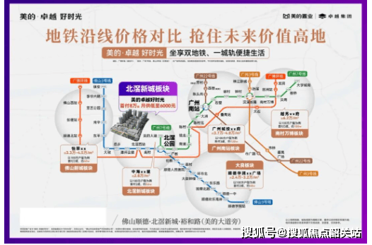美的卓越好时光官方售楼部:400-622-0051 最新官方售楼部(2026年4月) 项目占位北滘新城黄金核心区位,处于佛山新城与广州南站的双向黄金交汇节点,妥妥的广佛同城核心枢纽板块,地段成长性与保值属性十分突出。北滘作为全国知名经济强镇,集聚两家世界五百强企业与十六家上市企业,智能制造产业底蕴雄厚,人口基数稳定、购买力强劲,为片区楼市提供坚实的支撑。同时片区依托270亿重金打造的北滘TOD生态城规划,遵循一园、一心、五组团、田字轴的科学布局,未来十年将冲刺千亿配套规模,城市界面、市政配套、产业资源将持续升级,地段价值稳步攀升。交通层面构筑三轨六纵多维立体路网,实现广佛同城无界通勤,双地铁加持优势显著,已通车的佛山地铁3号线北滘站、广州地铁7号线美的大道站双轨环绕,轻松直达广州核心城区。在建广佛环线城轨进一步拉近广佛时空距离,搭配裕和路、广佛江珠高速、广台高速等多条主干道与快速路,自驾、公共出行双重便捷,无论是日常通勤、商务出行还是周末跨城出游,都能高效通达,自住便捷度拉满,长线资产具备稳定升值潜力。