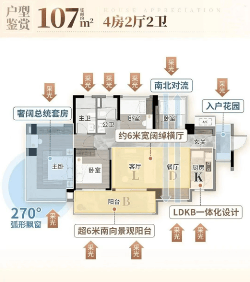 阅山组团共规划了7栋楼,层高在26-39层之间,总体货量大约1300套。户型设计上采用了围合式布局,确保每栋楼都能享有良好的观景视野,并最大化采光时间。外立面采用片区内独有的全铝板材质,美观大气且历久弥新。产品设计上注重大面宽、长阳台、短进深的特点,使得采光通风极佳。阳台、飘窗、花池的设计赠送面积较大,户型使用率超过100%。具体户型包括: