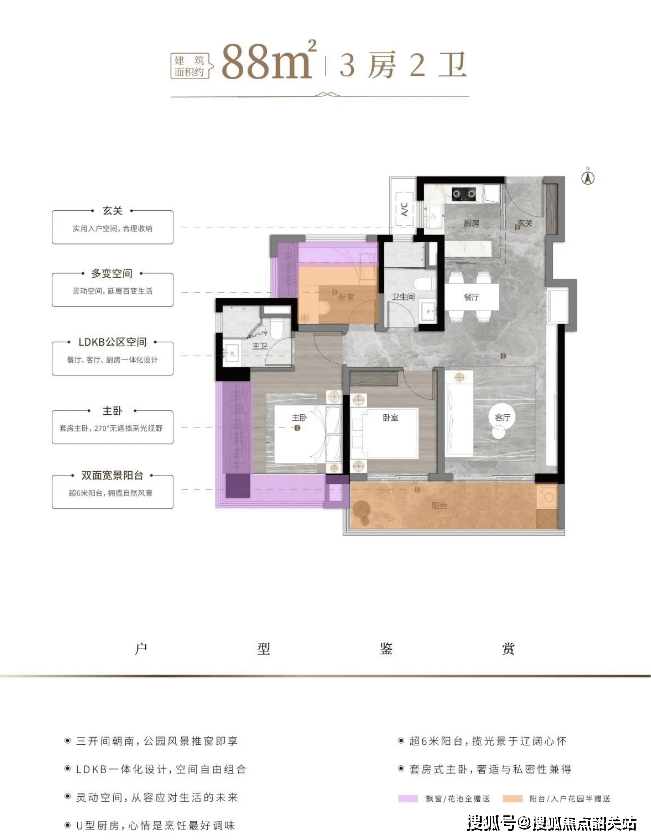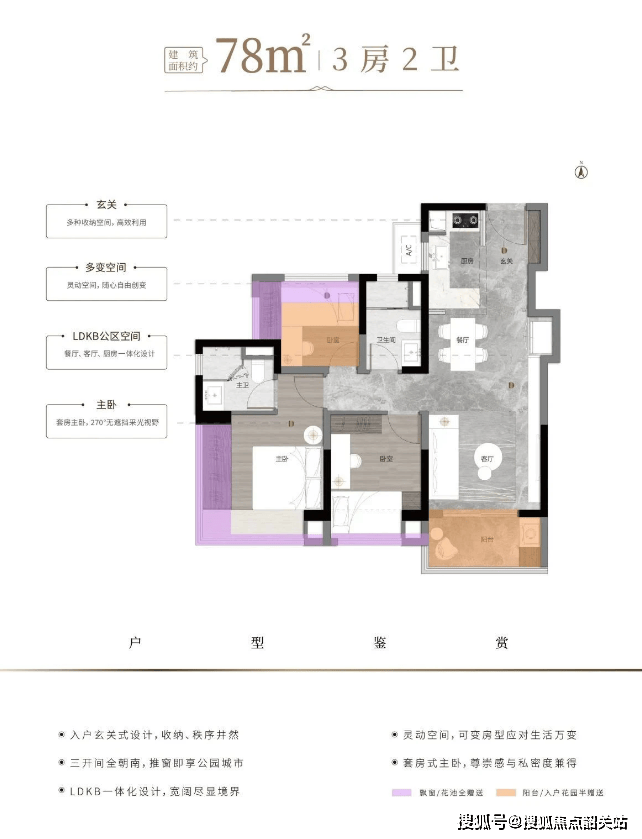 建面约78-140㎡三至四房,南北通透,得房率超85%;