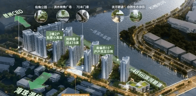 A: 项目紧邻海珠湿地公园,生态环境优越。社区内绿化率达 35%,拥有滨水生态园林和河岸步道,是真正的生态宜居社区。