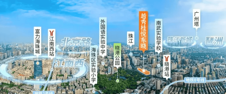 越秀桂悦东晓步行 600-700 米可达 8 号线晓港站,1 站换乘 2 号线,3 站换乘 3 号线,30 分钟内到达广州南站、珠江新城等核心区域,交通优势明显,吸引众多上班族和改善家庭关注。