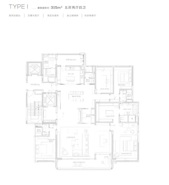 五、户型设计:145-315㎡阔景大宅,空间尺度与舒适度兼具