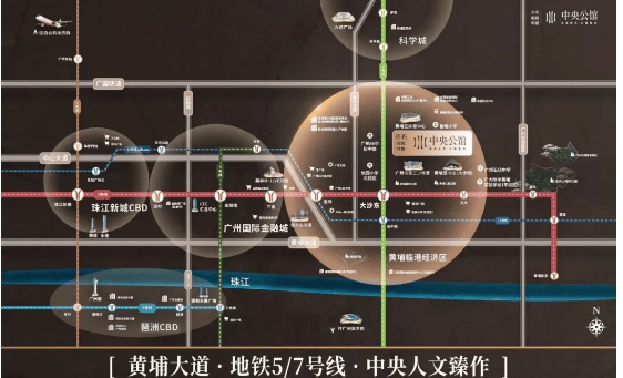 项目地处老黄埔真正核心地段,位于黄埔大道旁,紧邻 “一江两岸沿港经济带”,该区域已吸引 500 多家企业进驻,落地南方智媒、中国软件 CBD 等 30 多家知名总部企业,发展潜力显著。交通配套堪称 “一轴两轨四通八达”:距离地铁 5/7 号线大沙东站约 800 米,3 站可达天河金融城,10 站(约 26 分钟)直达珠江新城,3 站到黄埔科学城,7 站到番禺万博,半小时内畅达珠江新城、琶洲、万博三大 CBD;周边还有黄埔大道、中山大道、广园快速三大城市主干道贯穿全城,自驾出行同样便捷。区域未来还规划高铁新城,将进一步提升地段价值与交通便利性。