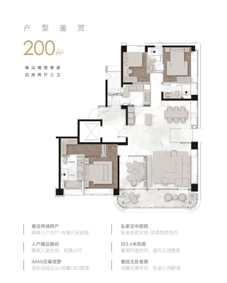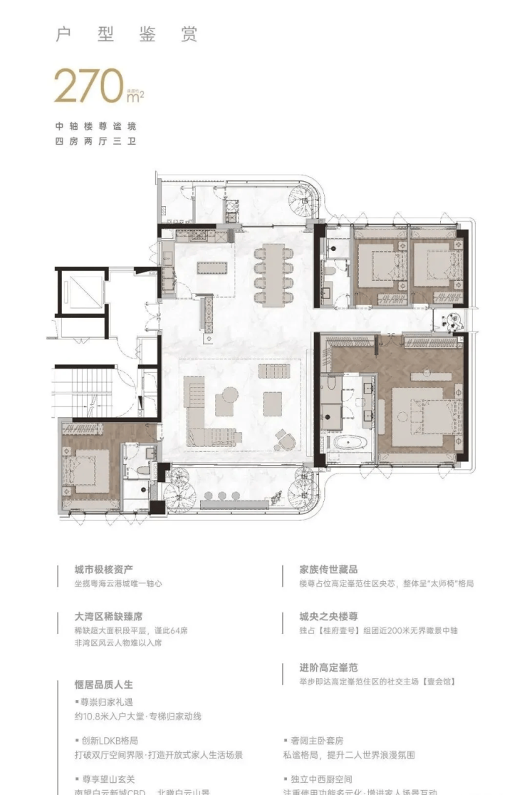 (2)户型设计:140-264㎡顶奢大平层,全维度优化