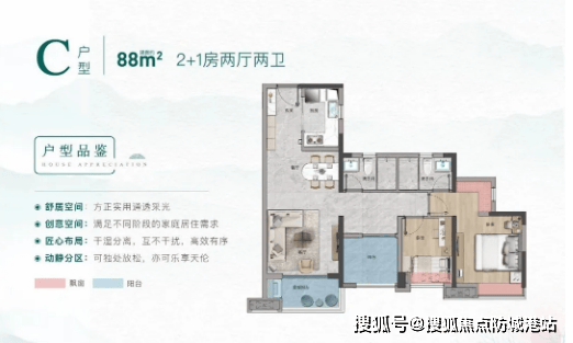 建面约88㎡三房二卫户型,主打高使用率、多赠送面积,空间布局紧凑合理,无浪费空间,适合小家庭或年轻夫妇居住。该户型动静分离,休息区与活动区互不干扰,保障业主的居住私密性;卧室采光充足,搭配观景飘窗,拓展空间的同时,让业主可欣赏社区园林美景;双卫生间设计,满足家人日常使用需求,避免早晚洗漱拥堵,提升居住便捷度。