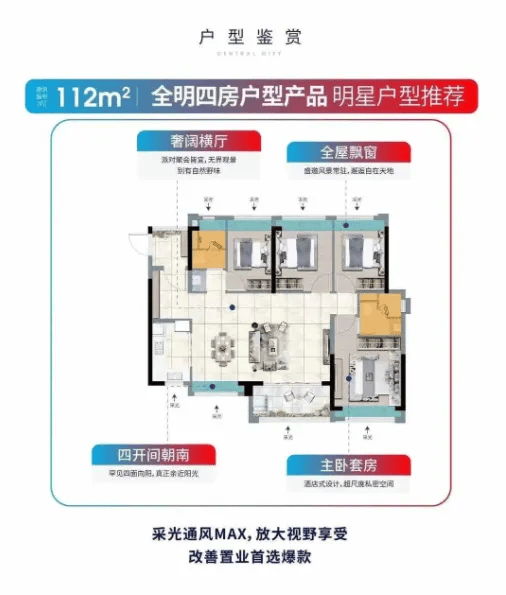 ✅ 建面约112㎡四房两卫:二胎家庭理想配置