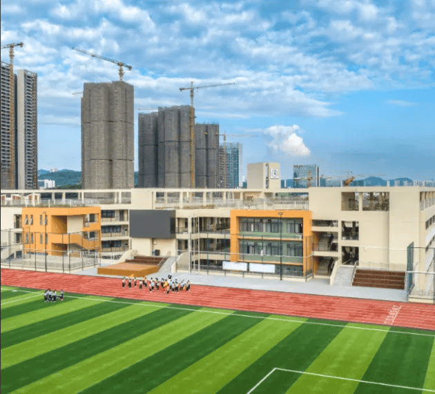 项目内规划建设5所托儿所、4所幼儿园及2所九年一贯制学校,形成从0岁到15岁的全龄教育闭环。其中,湖南师范大学附属黄埔实验学校已于2024年正式开学,这是湖师大在粤港澳大湾区唯一一所公办合作校,具有极高的稀缺性和含金量。