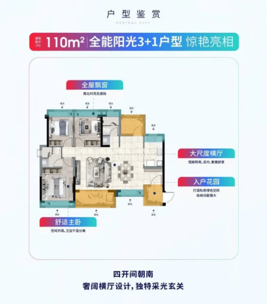 ✅ 建面约110㎡三房两卫:大横厅阔绰生活