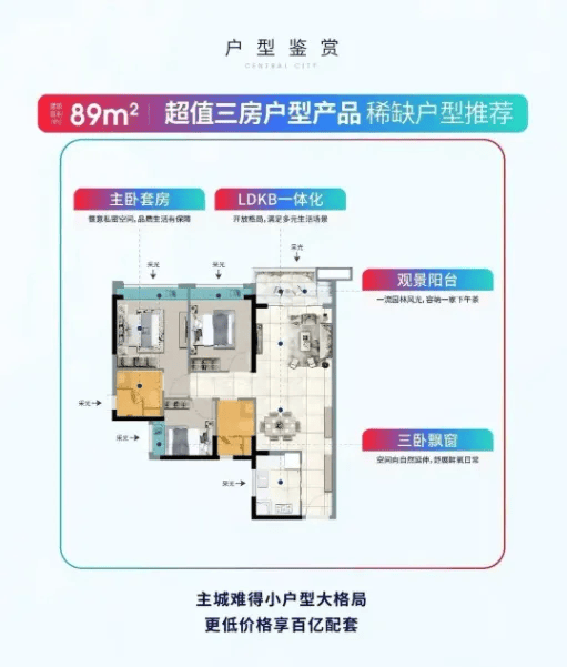 ✅ 建面约85㎡三房一卫:首付5万起,刚需上车首选