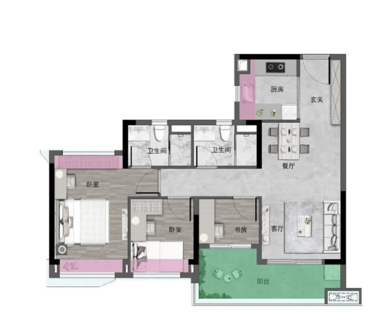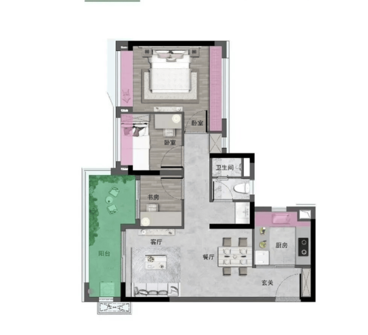 88㎡楼王全南三房:全南向设计,采光通风极佳,三房设计满足三口之家需求,空间宽敞舒适。