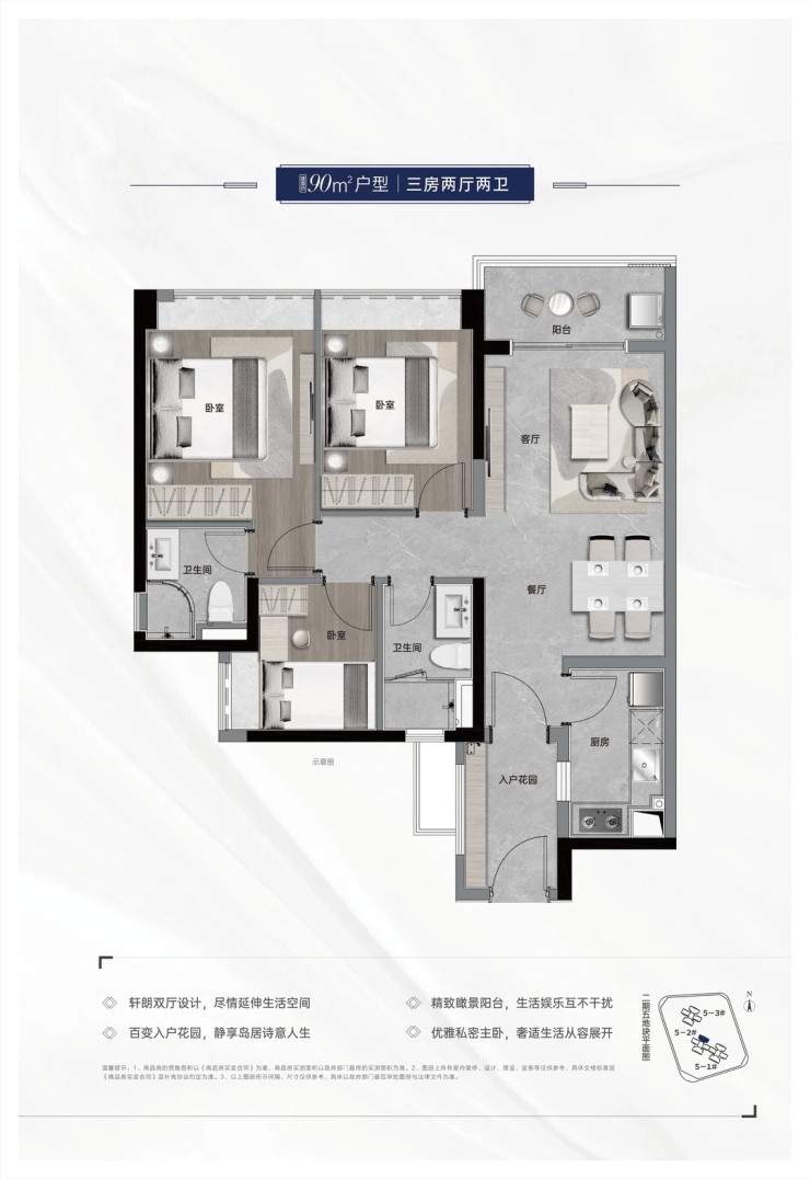 项目产品有70-90-101-119-137-142方二至四房户型,精装交付,一二期送全屋VRV中央空调、智能洗碗机、主卫智能马桶、中空LOW-E玻璃窗、品牌燃气灶台、抽油烟机和凉霸,现代化轻奢极简风格,深受市场喜爱。项目在售一二期房源为现房或准现房,为消费者提供了快速交楼的产品,免去了消费者对期房交楼不确定性风险的担忧。