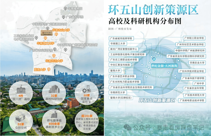 项目占位天河天河北-环五山策源区核心腹地,紧邻华南理工大学五山校区,南距珠江新城直线约4.5公里,北接智慧城科创板块,东连金融城产业集群,处于三大CBD黄金辐射圈。作为珠江新城5公里范围内稀缺在售一手住宅,区域汇聚高校资源与科创产业,高知人群密集,人文与产业氛围浓厚。项目周边旧改持续推进,东莞庄道路拓宽工程启动,板块人居与交通条件持续优化,区位价值稳步提升,为居住与资产价值提供坚实支撑,是天河刚改改善置业优选标的。