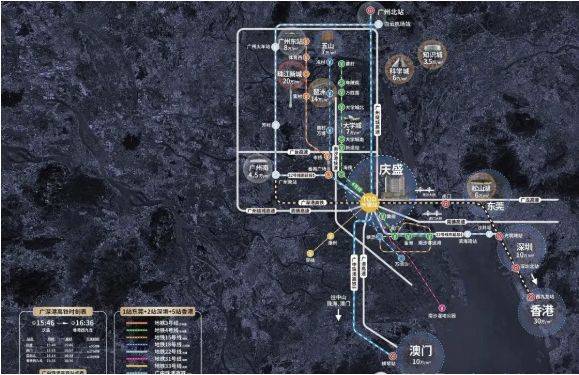 项目交通优势显著。位于庆盛枢纽区块东涌大道,距离东涌地铁站较近,且与庆盛枢纽约 1.2 公里。越秀地产匠心打造的超级连廊,参考纽约高线公园与香港人行天桥的架空设计,不仅遮雨遮阳,保障安全出行,还无缝连接居住地块、产研地块、香港科技大学(广州)、河涌公园、街心公园及东涌地铁站等丰富配套,实现高效便捷的互联互通。通过庆盛站,搭乘广深高铁,9 分钟可到东莞虎门、30 分钟到深圳北、35 分钟到西九龙。此外,双高铁规划,联结广深港高铁与规划中的广中珠澳高铁,可直达深圳北与香港西九龙;四地铁布局,4 号线、22 号线(规划中)、31 号线(规划中)、33 号线(规划中)“四线交汇”,未来一站抵达番禺广场,快速通达广州中心区,实现跨城出行的便捷高效,融入大湾区快速发展的交通网络。