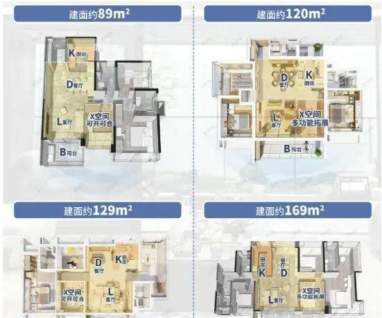 越秀天悦云啟的户型设计新颖独特,亮点纷呈。采用 LDKB + X 空间的全新设计理念,客厅(L)、餐厅(D)、厨房(K)、阳台(B)四个功能间可全部打通,形成一体化公区,增强通风采光效果与家人交流互动空间;客厅旁次卧的非承重墙可按需自由拓展,提升空间可塑性。在新规下,通过将飘窗加宽 60%,阳台进深加大,阳台占比从 15% 提升到 20%,使得使用率近乎 100%,成为南沙首个实现如此高使用率的楼盘,为居民提供更为宽敞舒适的居住体验。