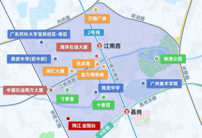 项目正对面即是广州市江南外国语学校(省一级),周边2公里内还有昌岗中路小学、广州市第五中学、广州市南武中学等多所省级名校环伺。丰富的教育资源为孩子们提供了优质的学习环境,是家庭购房时不可忽视的重要考量因素之一。