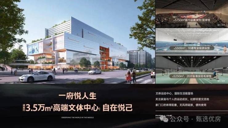 ❗【顺德中心首座高端文体中心,运动休闲新地标】项目积极推动文化配置升级,打造3.5万㎡、总投资超4亿元的高端文体中心(拟引入专业文体公司进行高品质运营,涵盖了室内恒温游泳池,羽毛球场、足球场,篮球场等)。