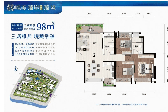关于户型设计,【臻境】新品展现了"实用主义奢宅"的理念。建面约98㎡和130㎡两种主力户型,分别针对不同家庭结构的需求进行了精心规划。这两种户型的设计,既保证了空间的实用性,又不失居住的舒适性,充分体现了现代人居的需求特点。
