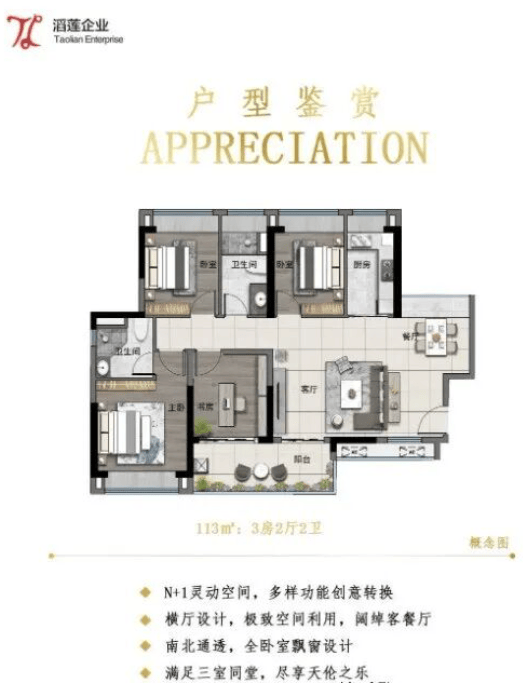滔莲国际主推建筑面积约89-113㎡的三室或四室户型,无论是年轻家庭还是大家庭都能找到适合自己的居住空间。户型设计注重实用性和舒适度,采用塔楼板式错位布局,增加了景观横向面,为业主提供了更加开阔的视野和更好的居住体验。