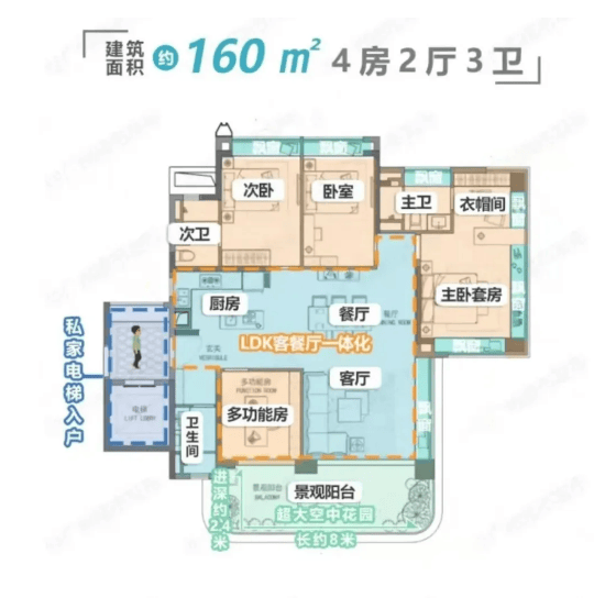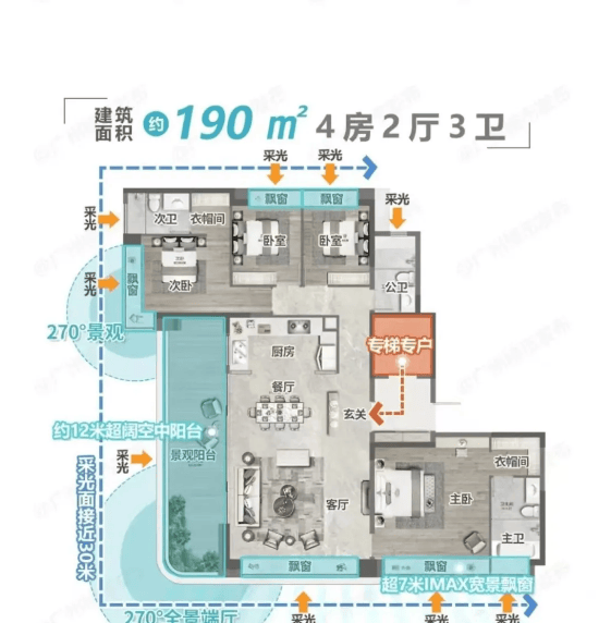 户型设计:3.25 米层高 + 高使用率,山景大平层引领改善