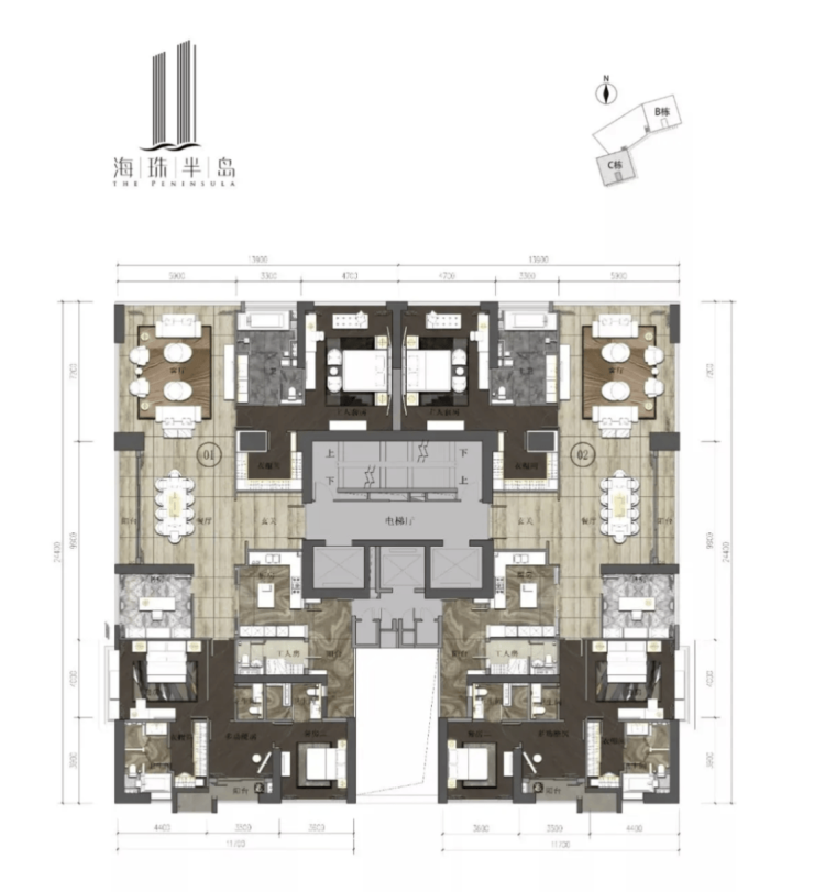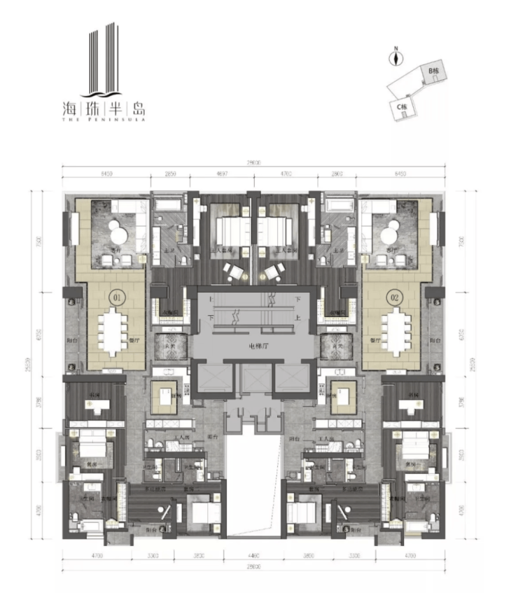 海珠半岛花园整体占地面积宽阔,规划为三期住宅区,其中第三期包括两栋43层高层建筑,每栋建筑均超过百米,形成社区独特的天际线。项目总户数合理,容积率适中,绿化率高,提供充足的公共空间和私密庭院。社区内部设施完善,包括独立江畔广场、园林绿地及豪华会所等,体现了高端住宅对生活质量的追求。小区整体设计兼顾景观、采光和居住舒适度,同时采用现代建筑风格,精心打造私密与开放兼顾的居住环境。凭借优越地理位置,项目周边生活、教育和交通设施完善,使住户可以在市中心核心区域获得难得的高品质生活体验。