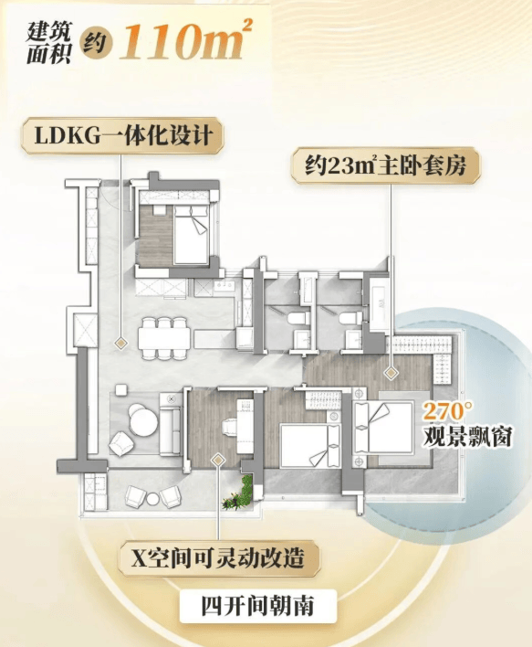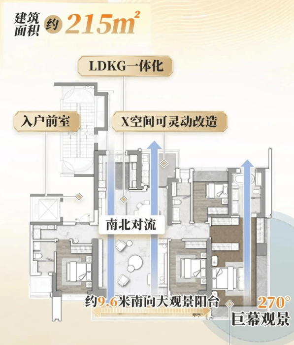 长隆万博悦府提供从约110平方米到300平方米不等的多种户型选择,均为四房设计,适合不同需求的家庭。特别是大面积户型如170平方米的悦嘉D-2户型,配备南北通透对流设计、主卧套房及LDKG一体化布局;而300平方米的大平层则提供三梯两户设计,双套房享受,直接观景长隆乐园。