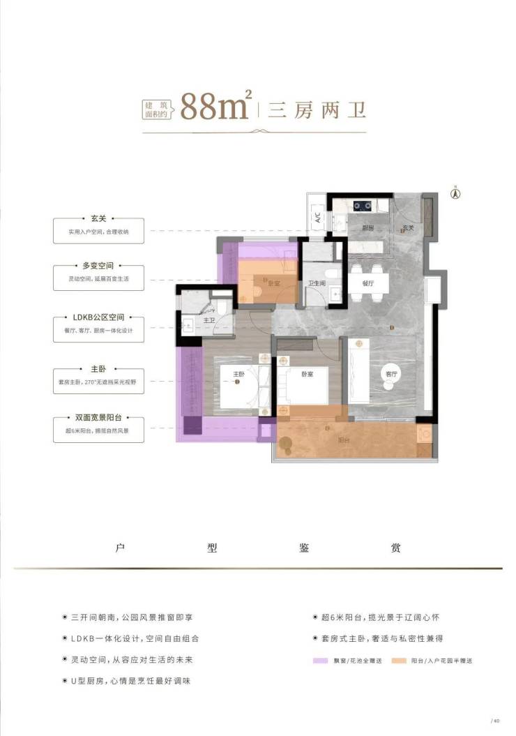 产品革新:78-117㎡三至五房,LDKB一体化设计,6.8米双联阳台,实际使用面积超区域同面积段产品20%