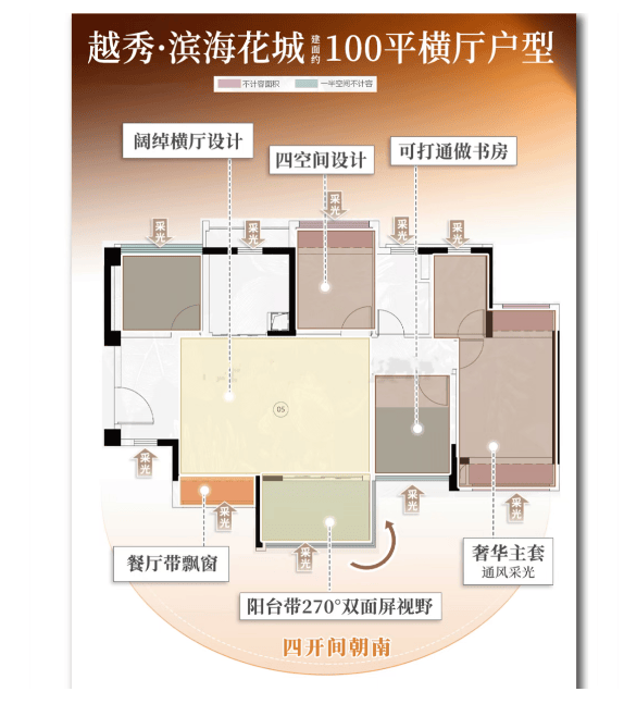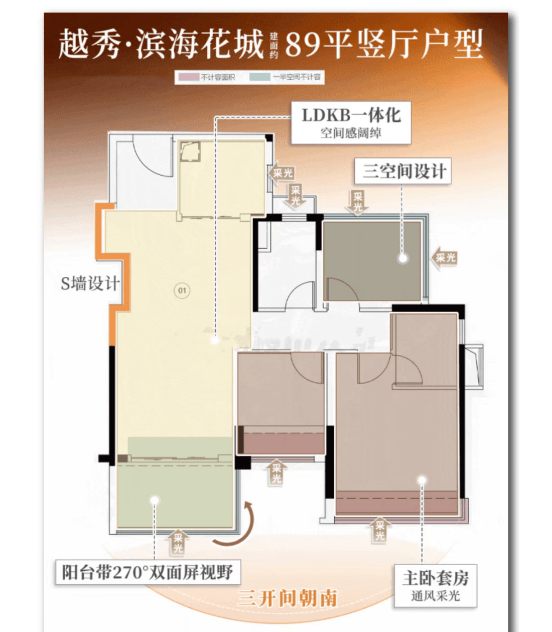 越秀滨海花城推出多种户型选择,从紧凑的76㎡到宽敞的100㎡不等,适应不同家庭结构的需求。每个户型都经过精心设计,确保了空间利用的最大化和居住舒适度。例如,部分户型拥有270°环幕视野,增加了室内的采光面积和景观视野;X空间设计则提高了空间使用的灵活性和效率。这些设计细节体现了开发商对居住者生活质量的高度重视。