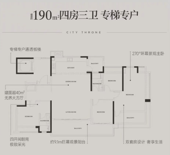 项目主打建面约240平方米的四至五房大平层户型,每栋楼均设有专梯专户,保证了住户的私密性和舒适度。尤其是T5栋楼王,其三面采光、南北双阳台、中西厨等设计细节,无不彰显出其高端定位。具体售价信息则需根据市场情况而定。