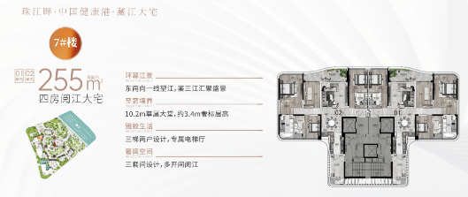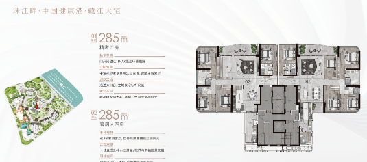 提供建面约233-285㎡的四至五房户型,东向/东南向一线望江,层高达到极致的3.4-3.6米,为居住者带来无与伦比的开阔视野。