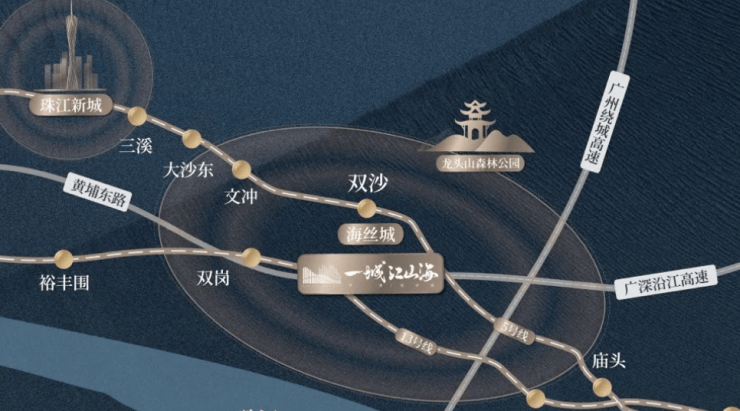 当我们深入剖析【中建海丝城】的地段价值时,会发现其不仅仅是一个地理坐标的优越,更是一种多维价值体系的深度融合与爆发,这种融合体现在“广州海丝城”的强大驱动力、独特“双地铁交汇”的便捷性以及“华中师大名校”的无限潜力上。首先,作为雄踞广州市黄埔区老黄埔核心腹地的绝版孤品,中建海丝城直接受益于《广州市国民经济和社会发展第十四个五年规划和2035年远景目标纲要》及“粤港澳大湾区”战略的政策红利。项目位于广州海丝城板块,拥有老黄埔稀缺的南向江景资源,靠近珠江地块也有望打造成滨江豪宅,北侧还是龙头山森林公园,自然景观非常优越,所以取名“江山海”。“一城”——指广州这一世界级湾区大城市,更指中建双沙项目为东部市场上的未来大城;“江山海”——背倚龙头山,面朝珠江水,坐落海丝城的通山达水生态格局,更与历史人文底蕴相聚于此。通过案名,以及上面的分析足以看出双沙村的两大优势:巨无霸式体量与南向一线望江。能够同时拥有“海丝城核心 + 双地铁交汇 + 华中师大名校 + 超100%使用率 + 央企大城”五重地段优势的项目更是凤毛麟角,甚至可以说是绝版。左手是千年商都的历史底蕴,右手是现代都市的繁华便利,脚下是中建海丝城的时代杰作,可谓赢在起跑线上。论交通技能,它有——与地铁5号线双沙站的直线距离仅约50米,与地铁13号线双岗站直线距离也不到500米,双地铁站护航,交通条件优越,从项目出发,2站到鱼珠CBD,5站金融城,6站琶洲东区,10站直达珠江新城,囊括广州最重要的几个CBD。这种“左牵历史右享未来”的绝佳格局,注定了其未来的稀缺性与增值潜力。