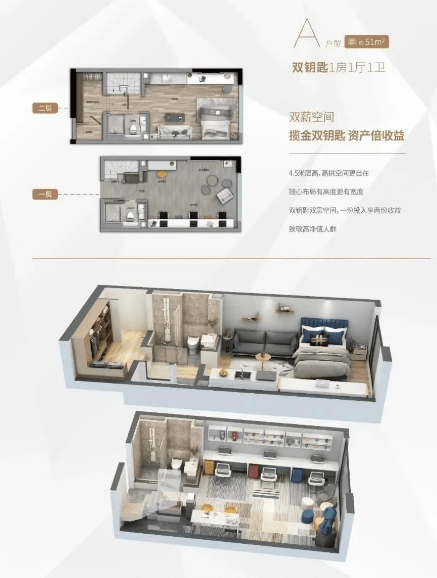 A户型:建筑面积约51㎡,双钥匙设计,适合资产双倍收益。