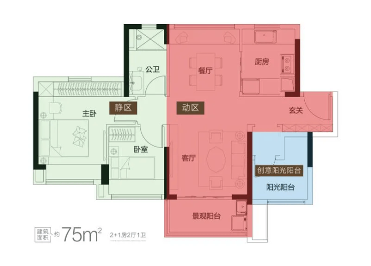 城发·榕华里择址禅城核心南庄,以创新的设计理念打造出高性价比的75㎡全盘南向2+1房户型。项目注重空间利用效率和生活体验感,确保每一寸空间都能发挥最大价值。