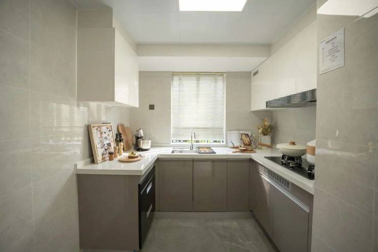 U型阳光大厨房,洗切煮取动线合理,节省空间。