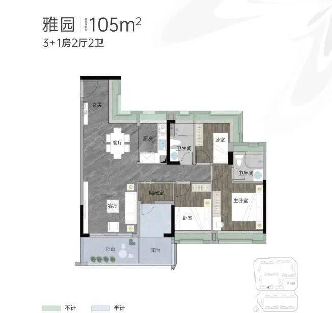 户型方正,空间使用率高,采用奢阔横厅设计,配备步入式衣帽间、全屋飘窗等豪华配置。