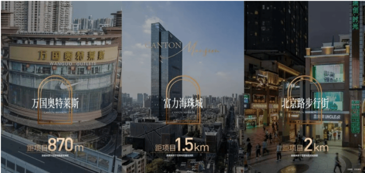 项目处于海珠、越秀双核商圈核心,2 公里内覆盖万国奥特莱斯、海港城、北京路天河城,步行 10 分钟可达,日常购物、餐饮、娱乐一站式满足;3 公里内辐射江南西商圈、太古仓商圈、中大时尚消费商圈、广州塔 - 琶洲商圈、北京路商圈、上下九商圈等 8 大高能级商圈,聚集超千家品牌商户、高端商场、特色餐饮,无论是日常消费、高端购物、商务宴请还是休闲娱乐,均有丰富选择,成熟度无需等待,是新兴板块 5-10 年难以企及的商业配套高度。