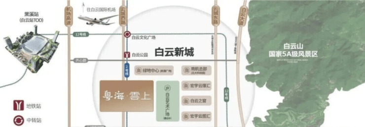 对于主城置业者而言,区位与交通是绕不开的核心考量,毕竟通勤效率直接决定生活品质。粤海云上坐落于白云区云城西路291号,地处白云新城中轴线核心位置,这里作为白云区的“封面板块”,定位为国际交往中心、总部经济集聚区,已汇聚南航、无限极等超20栋总部大楼,200余个重大项目落地,区域发展势能持续攀升。