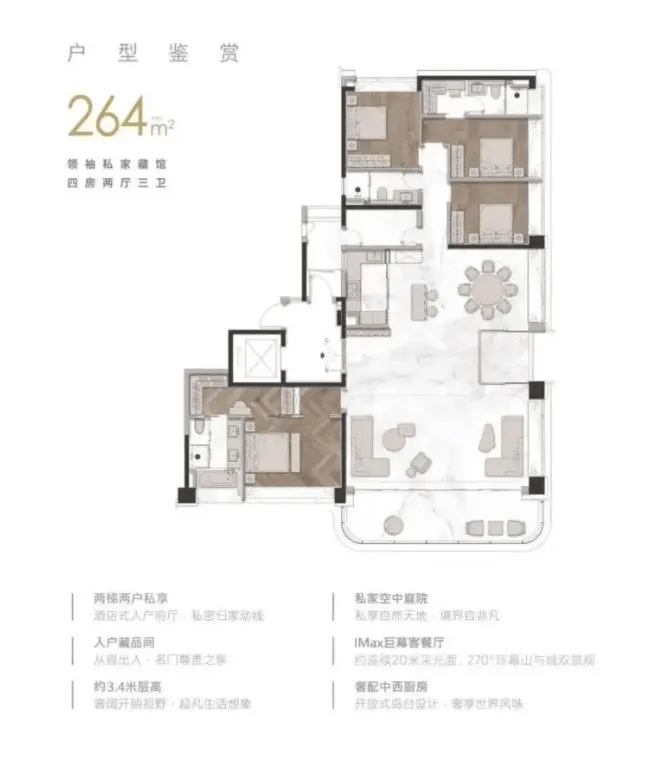 251㎡户型在之前产品基础上全面升级,视野更开阔,能更好地欣赏山景与城景,总价700万起,性价比突出,适合追求更高居住品质的家庭。571㎡超大平层则主打阔绰空间,极致彰显居住格调,适合追求顶级居住体验的家庭,能满足多元生活场景需求,无论是家庭聚会、私人宴请还是打造专属兴趣空间,都能轻松实现。