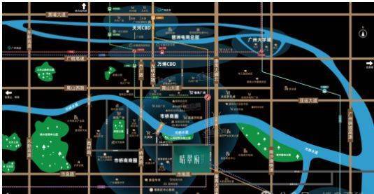 地理位置:位于广州番禺区番禺大道和市桥河交界处,桥南街桥南联兴路 28 号,临近广州地铁 3/18/22 号交汇的番禺广场站。项目坐落于番禺南拓双核枢纽发展区,承接番禺广场 TOD 超级枢纽辐射,填补板块高端住宅空白,为城市精英打造了私密且具烟火气的理想居住之所。