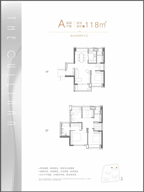 天健天玺采用高低配产品设计,涵盖高层复式洋房与稀缺院墅两类产品,圈层纯粹且适配不同家庭的置业需求。其中高层洋房共4栋,主打建面约85-120㎡4-5房复式户型,凭借超高实用率成为改善型家庭的首选。