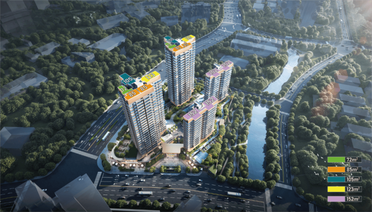 面积段分布:刚需到豪宅全覆盖 项目在售户型面积段覆盖广泛,从72㎡的紧凑三房到152㎡的豪华五房,应有尽有。