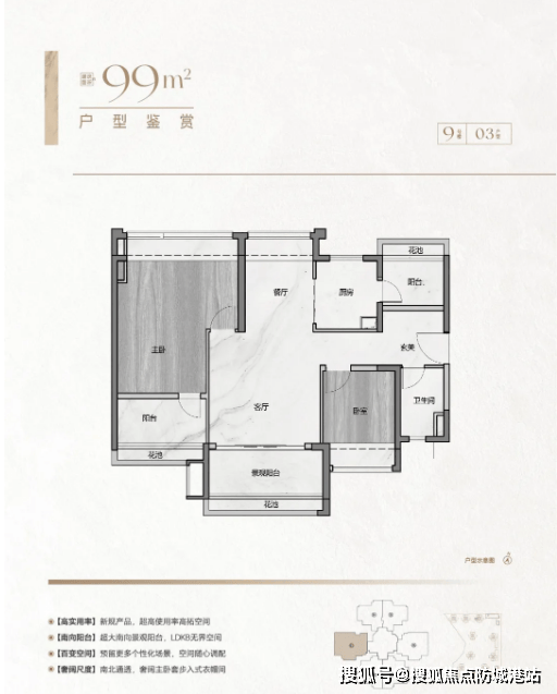 在售产品:建面约 77㎡三房两卫、85㎡三房两卫、90㎡三房两卫、99㎡四房两卫(新规产品,使用率至高 106%)