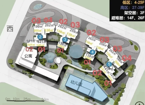 高区户型:主打262㎡江景大平层,拥有开阔的视野和豪华的居住体验。