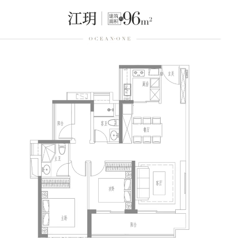 建面约96㎡竖厅:6.4米景观阳台+三开间朝南。