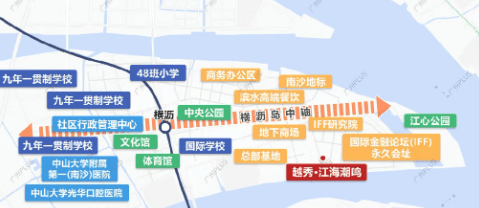 越秀江海潮鸣项目坐落于广州南沙区横沥岛南岸,紧邻国际金融论坛(IFF)永久会址,距离仅420米。东侧可观望明珠湾大桥,西邻滨江绿化带及凤凰大桥,地理位置优越。此项目由越秀地产开发,自2022年5月拿地以来,迅速成为区域内备受瞩目的住宅项目之一。