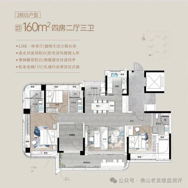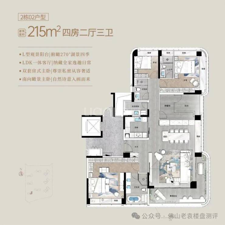 楼王顶豪户型为建面约260-320㎡四房/五房两厅四卫,全系嘉格纳厨电六件套,酒店式双主卧套房设计,主卫配独立浴缸与美妆冰箱,80㎡奢阔方厅,环幕湖景视野,专为广佛金字塔尖的高净值客群打造,彰显非凡身份与品味。