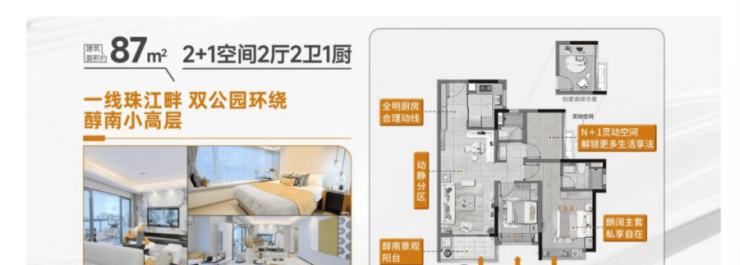 项目户型得房率普遍超过90%,这在广州新房市场中属于较高水平。N+1空间的巧妙设计,使得实际使用面积远大于建筑面积,极大地提升了性价比。例如,87㎡户型的实际使用面积可能接近80㎡,相当于传统户型的100㎡左右。