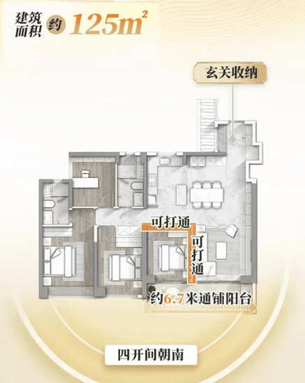 215㎡大平层:3梯3户,带超大入户前室,拥有约9.6米南向大景观阳台,和主卧270°观景飘窗,看园林景观。